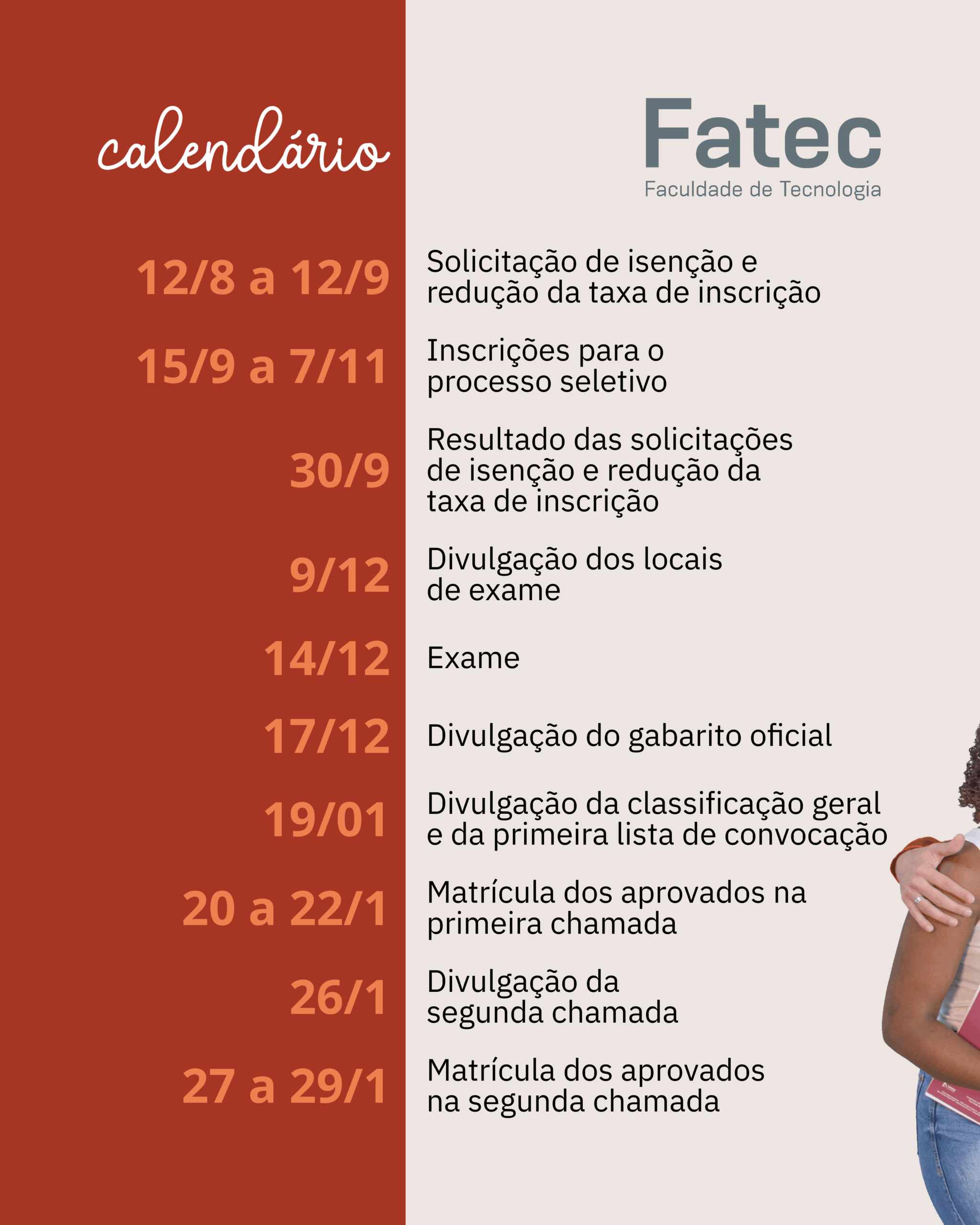 Ainda dá tempo!! Solicite sua isenção ou redução da taxa de inscrição Processo Vestibular 1º Semestre/2026. Acesse o site e confira o vídeo com as orientações sobre como solicitar, não perca tempo!! https://vestibular.fatec.sp.gov.br/home